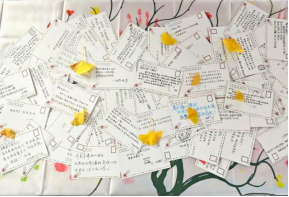 活动现场,同学们不仅明信片上书写了对留守儿童的鼓励与寄语,还在宣传KT板的大树图腾上汇聚了五彩斑斓的手印。这些寄语、手印如同插上翅膀的天使和一颗颗真挚的心灵,在西理学子间同构筑起一棵希望之树。同学们满满的爱心也将穿越山川,抵达大山深处,抚慰孩子们的心灵。