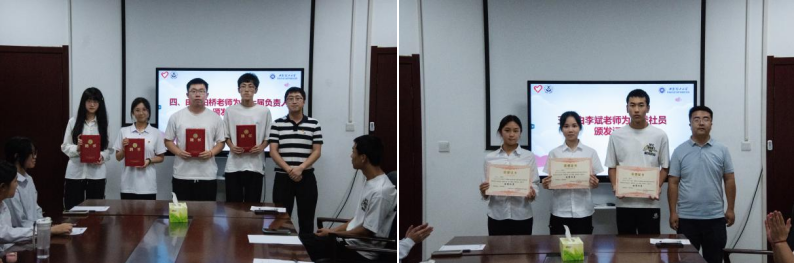伏柏桥为公司青年志愿者协会第七届负责人颁发聘书,李斌为优秀社员颁发奖状。