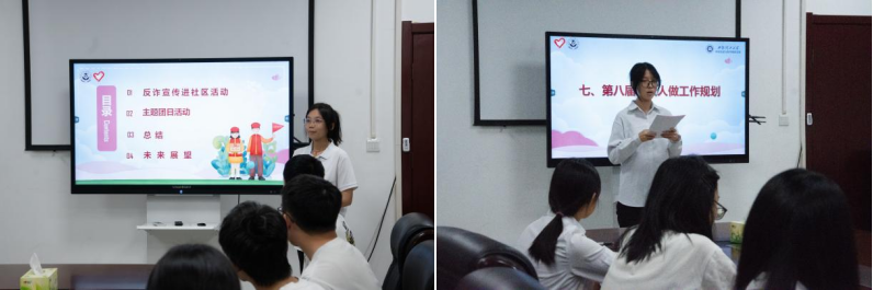 会上,第七届社团负责人郭莹莹对过去一年的工作进行了总结,详细阐述了活动的开展情况、取得的成果以及存在的不足。希望新一届负责人未来能够在服务中锤炼担当,始终坚守初心,以扎实的专业素养、务实的工作作风完成每一项任务,以实际行动诠释青年志愿者的责任与担当。